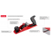 Рубанок имеет целое литое основание, что повышает точность работы и устраняет вибрацию. Металлический корпус покрыт краской, инструмент не подвержен деформациям и устойчив к коррозии. Лезвие из качественной инструментальной стали обеспечивает длительный срок службы.