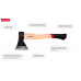 Топор изготовлен из высококачественной кованой углеродистой стали. Дополнительная термообработка лезвия обеспечивает долговременную службу инструмента. Обух обладает антикоррозионным ударопрочным покрытием для защиты от ржавчины и сколов. Ручка из древесины пекан имеет высокие прочностные показатели за счет твердых волокон дерева.