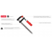 Основание выполнено из прочной стальной направляющей, ручка – деревянная. Благодаря пластиковому наконечнику на зажимных губках гарантирована защита зажимаемых деталей от механических повреждений, царапин.