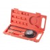 Тестер укомплектован набором переходников для подключения к разным системам. Оснащен прочным шлангом диаметром 1/4" и длиной 600 мм, а соединение манометра выполнено по стандарту 1/4-18NPT, что обеспечивает надежность и универсальность при использовании. Весь комплект поставляется в прочном пластиковом кейсе с индивидуальными посадочными местами для удобного хранения и транспортировки.