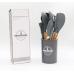 Описание Силиконовый кухонный набор принадлежностей с деревянной ручкой 12 предметов Серый