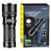 Фонарь имеет 5 режимов работы: 100%, 70%, 50%, стробоскоп и SOS, что делает его универсальным для разных ситуаций. Размеры модели составляют 158 × 54 мм.