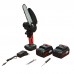 Аккумуляторная мини цепная пила имеет эргономичную форму корпуса и компактные габариты. Используется преимущественно в бытовых условиях и предназначена для обрезки деревьев и удаления сухих веток на приусадебном участке. Минипилка работает от литиевого съёмного аккумулятора. В комплекте поставляется шина с рабочей длиной 152 мм (6 дюйма), шаг цепи составляет 1/4 дюйма. Высокая скорость вращения цепи достигает 5 м/сек, что позволяет повысить эффективность распылительных работ. Пила не оснащена автоматической смазкой цепи, при использовании инструмента периодически нужно смазывать цепь вручную (смазывайте цепь маслом для смазки цепей для цепных пил) таким образом двигатель меньше нагружается, что повышает срок службы пилы