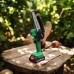 Аккумуляторная мини цепная пила имеет эргономичную форму корпуса и компактные габариты. Используется преимущественно в бытовых условиях и предназначена для обрезки деревьев и удаления сухих веток на приусадебном участке. Минипилка работает от литиевого съёмного аккумулятора. В комплекте поставляется 2 шины (6 и 4 дюйма), шаг цепи составляет 1/4 дюйма. Высокая скорость вращения цепи достигает 5 м/сек, что позволяет повысить эффективность распылительных работ. Пила не оснащена автоматической смазкой цепи, при использовании инструмента периодически нужно смазывать цепь вручную (смазывайте цепь маслом для смазки цепей для цепных пил) таким образом двигатель меньше нагружается, что повышает срок службы пилы
